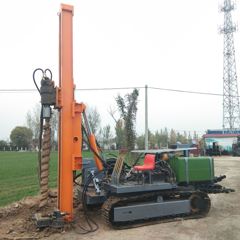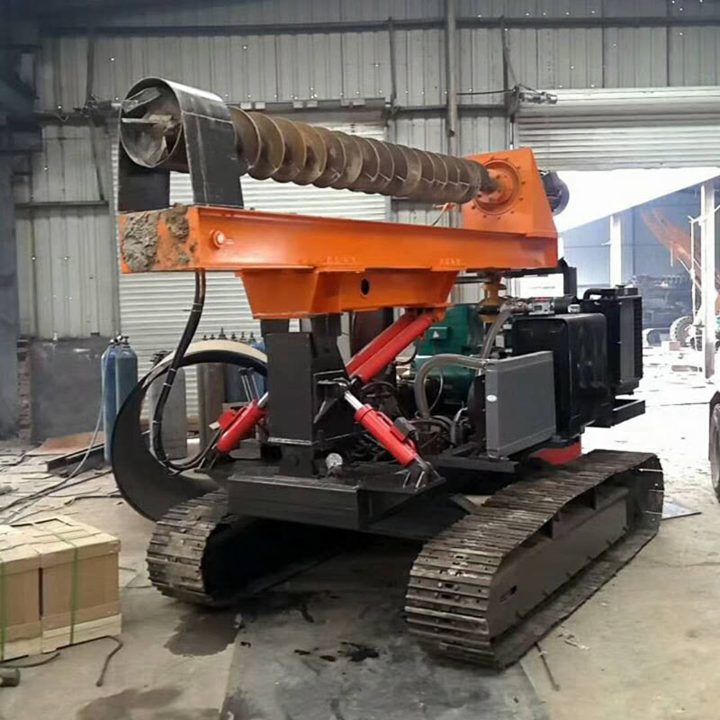 履帶光伏打樁機(jī)是用于光伏樁基工程施工中的一種專用機(jī)器。根據(jù)不同的施工要求它可以通過動(dòng)力頭帶動(dòng)鉆桿向地下鉆進(jìn)成孔,亦可直接鉆進(jìn)螺旋管樁。本機(jī)可用自帶發(fā)電機(jī)發(fā)電或外接電源兩種工作方式。